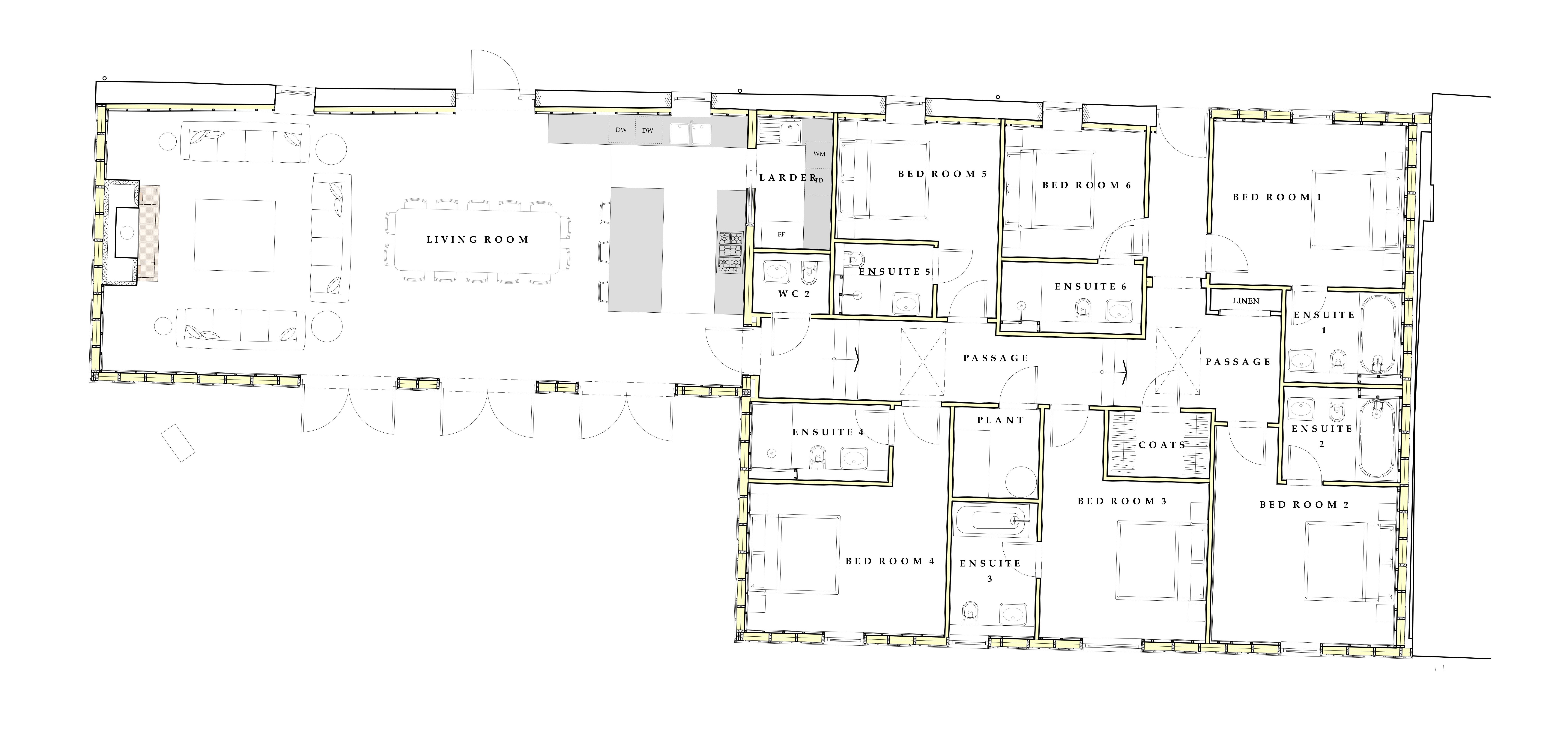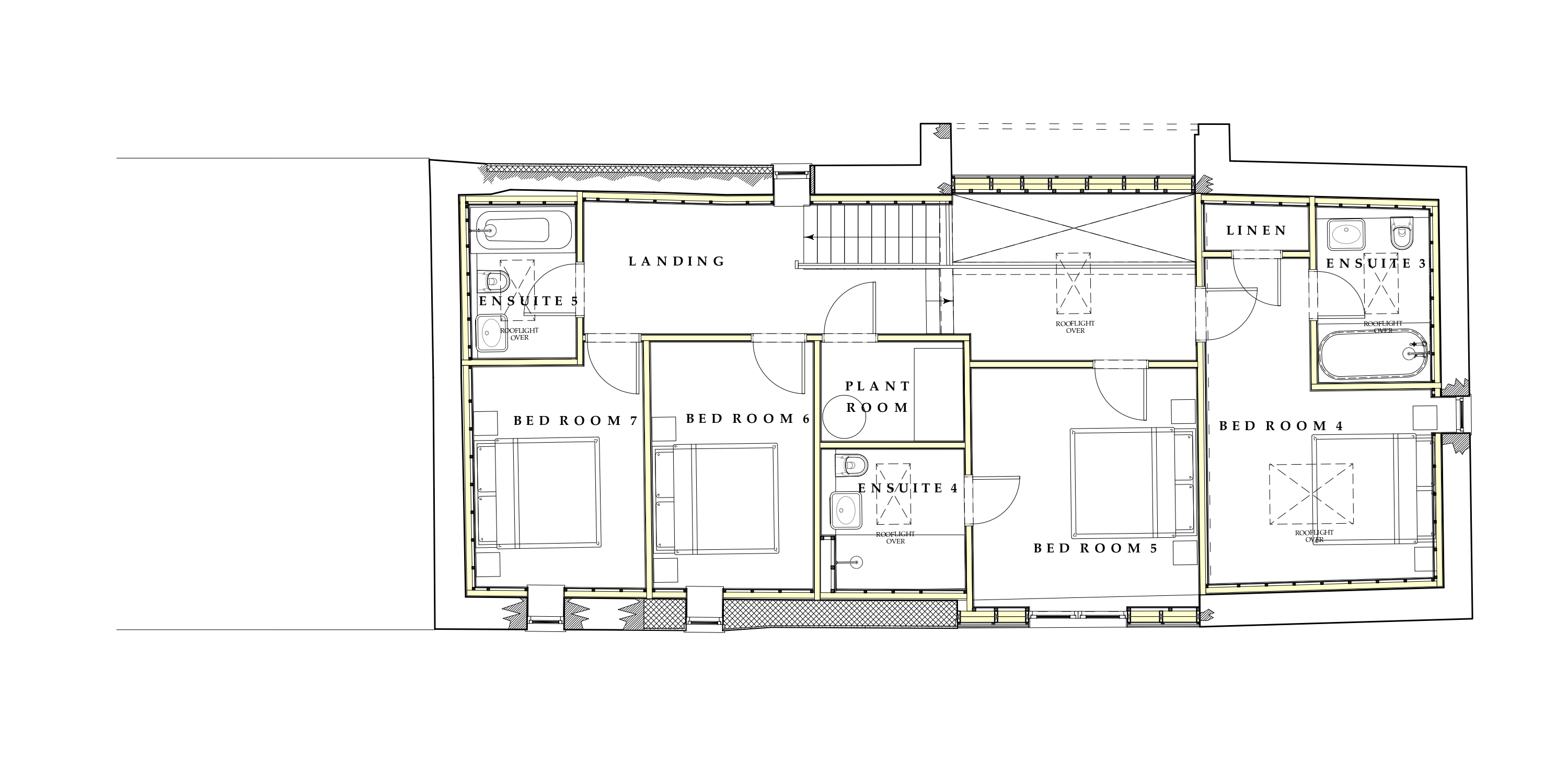 Bedroom 5 has twin beds to make the best use of the space. These can be arranged as a super king but bear in mind that this will mean there is restricted space around the bed or that one side will be against a wall. This room has an en suite wet room.